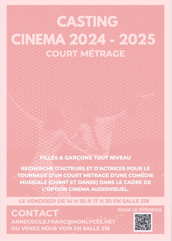 N’hésitez pas à venir voir les élèves de cinéma pour en savoir plus.