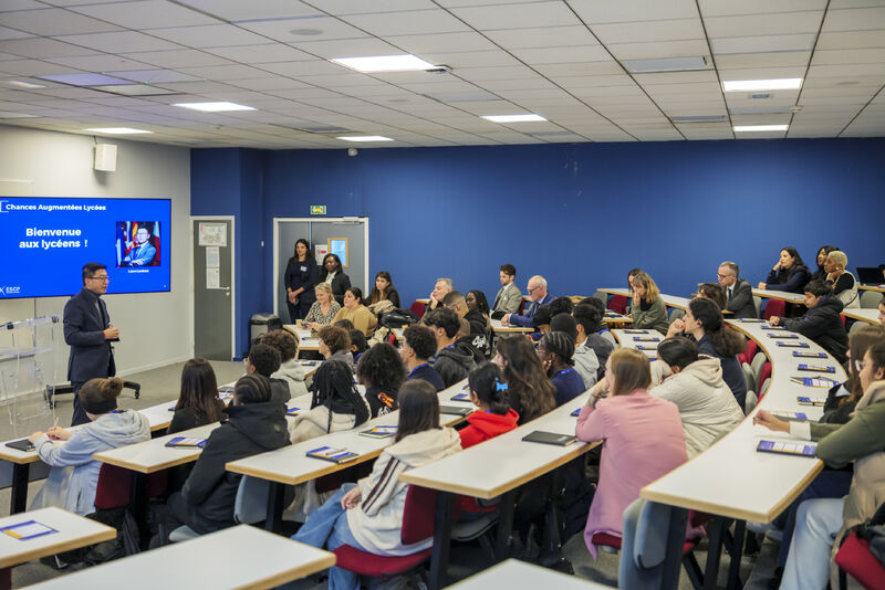 Le 6 décembre dernier, les élèves volontaires de seconde du Lycée de la Plaine de Neauphle ont eu l’immense privilège de participer au lancement du programme "Chances Augmentées Lycées" à ESCP Business School. Ce projet ambitieux, rendu possible grâce au soutien de donateurs visionnaires comme Eric Courteille et Nathalie Balla, offre un accompagnement sur trois ans à des lycéens à fort potentiel.