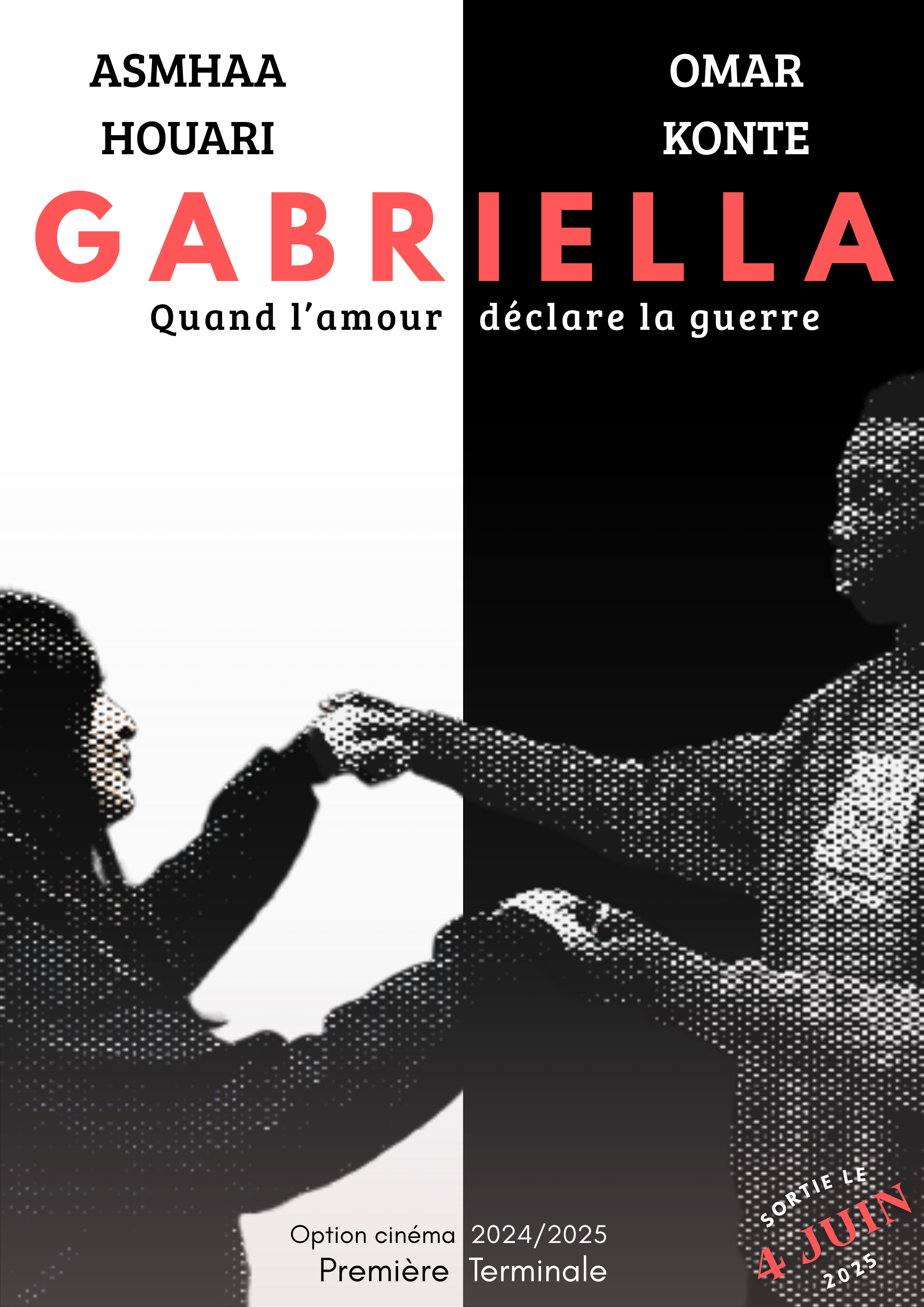 GabriellaAffiche du film Gabriella, quand l’amour déclare la guerre. Une comédie musicale écrite et réalisée par les élèves de l’option cinéma niveau 1ère/terminale.Gabriella, une jeune adolescente de 17 ans entre dans un nouveau lycée. Elle propose d’aider un autre élève, Josh, un adolescent qui a quelques lacunes. Entre les cours particuliers et les cours de danse, une tension amoureuse naît entre les deux jeunes. Mais leur amour sera-t-il possible ?