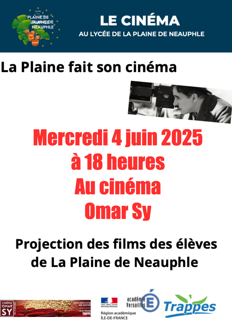 C’est désormais un rendez-vous incontournable, les élèves de l’option cinéma du lycée de la plaine de neauphle présenteront les films réalisés durant l’année scolaire au cinéma partenaire Omar Sy (grenier à sel).